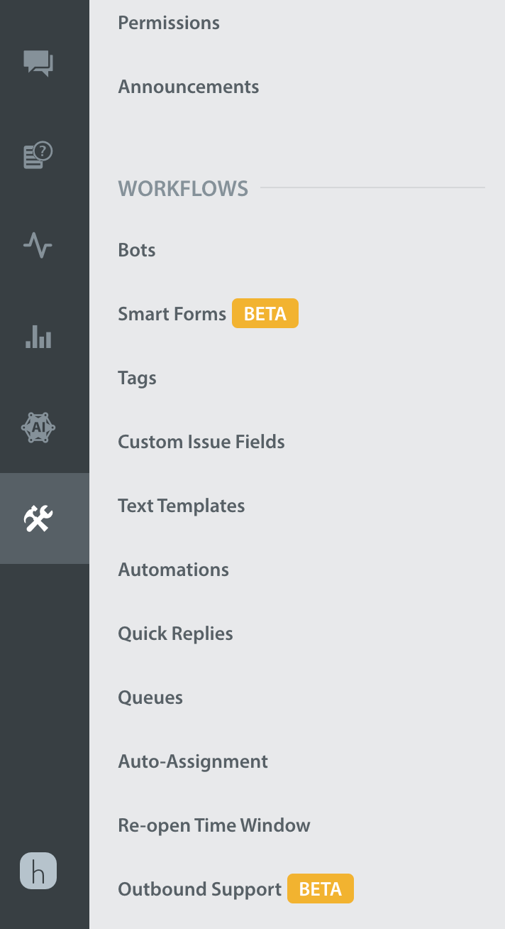 To generate the link for Outbound Support, on your Helpshift dashboard, go to Settings > Workflows > Outbound Support.
